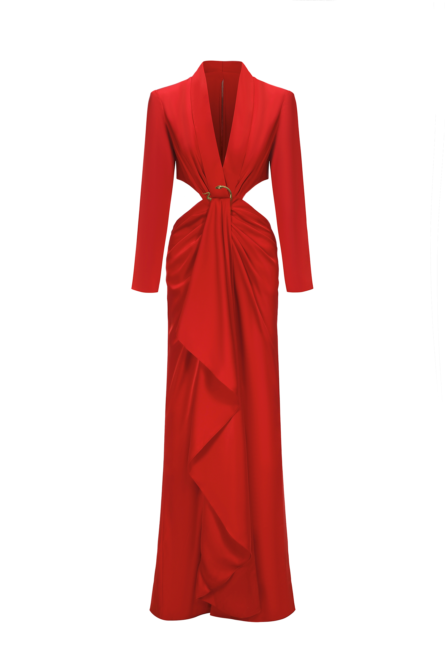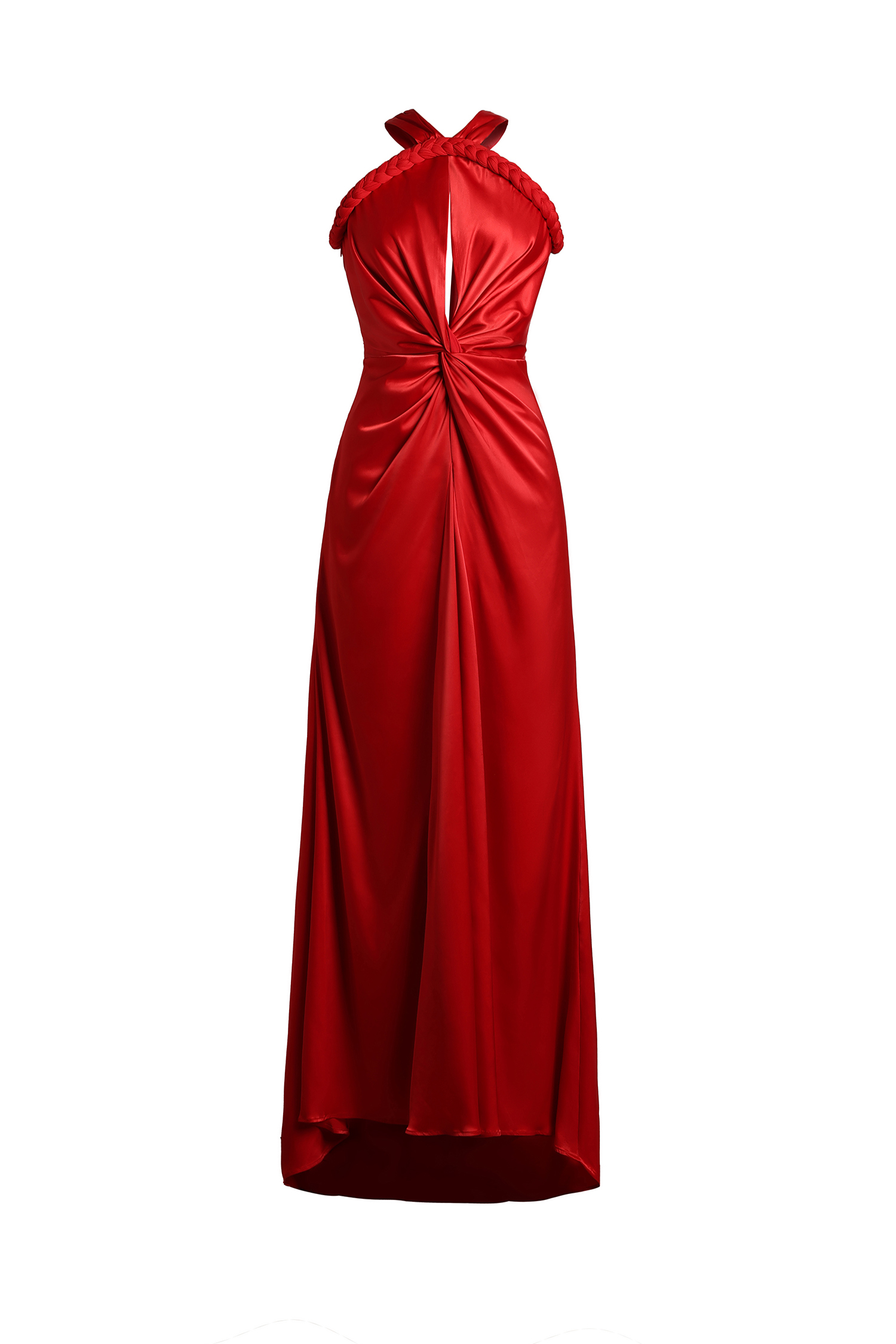 Vanya Woven Halter Cut Out Satin Maxi Dress - Red