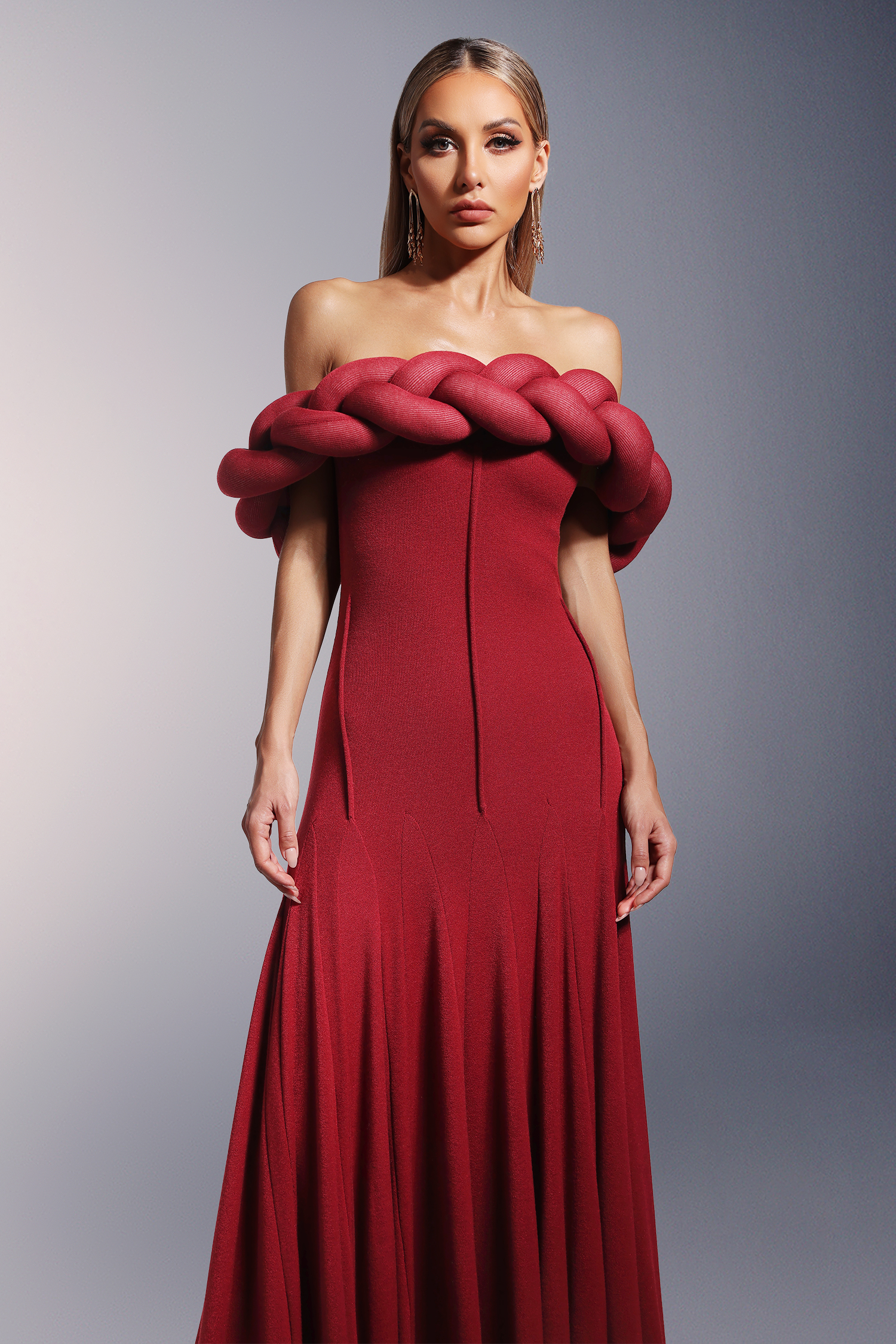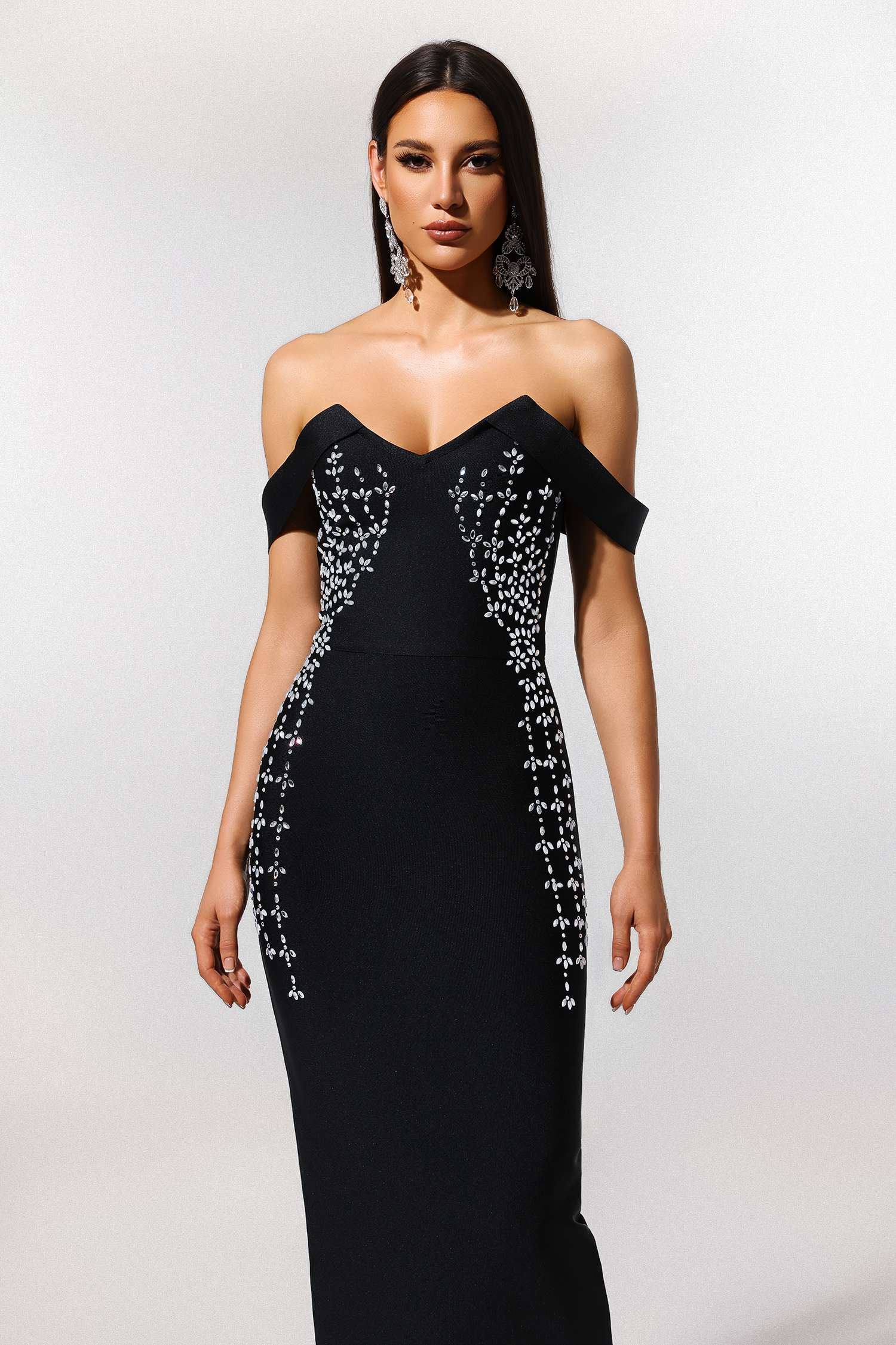 Hatice Off-The-Shoulder Diamond Bandage Maxi Dress
