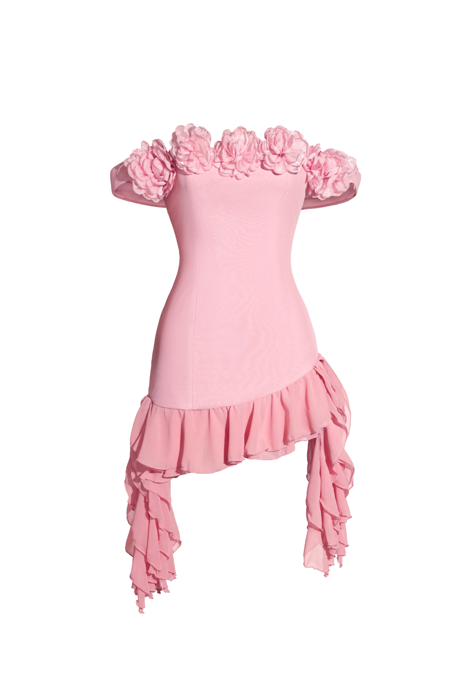Linda One Shoulder Flowers Ruffled Mini Dress