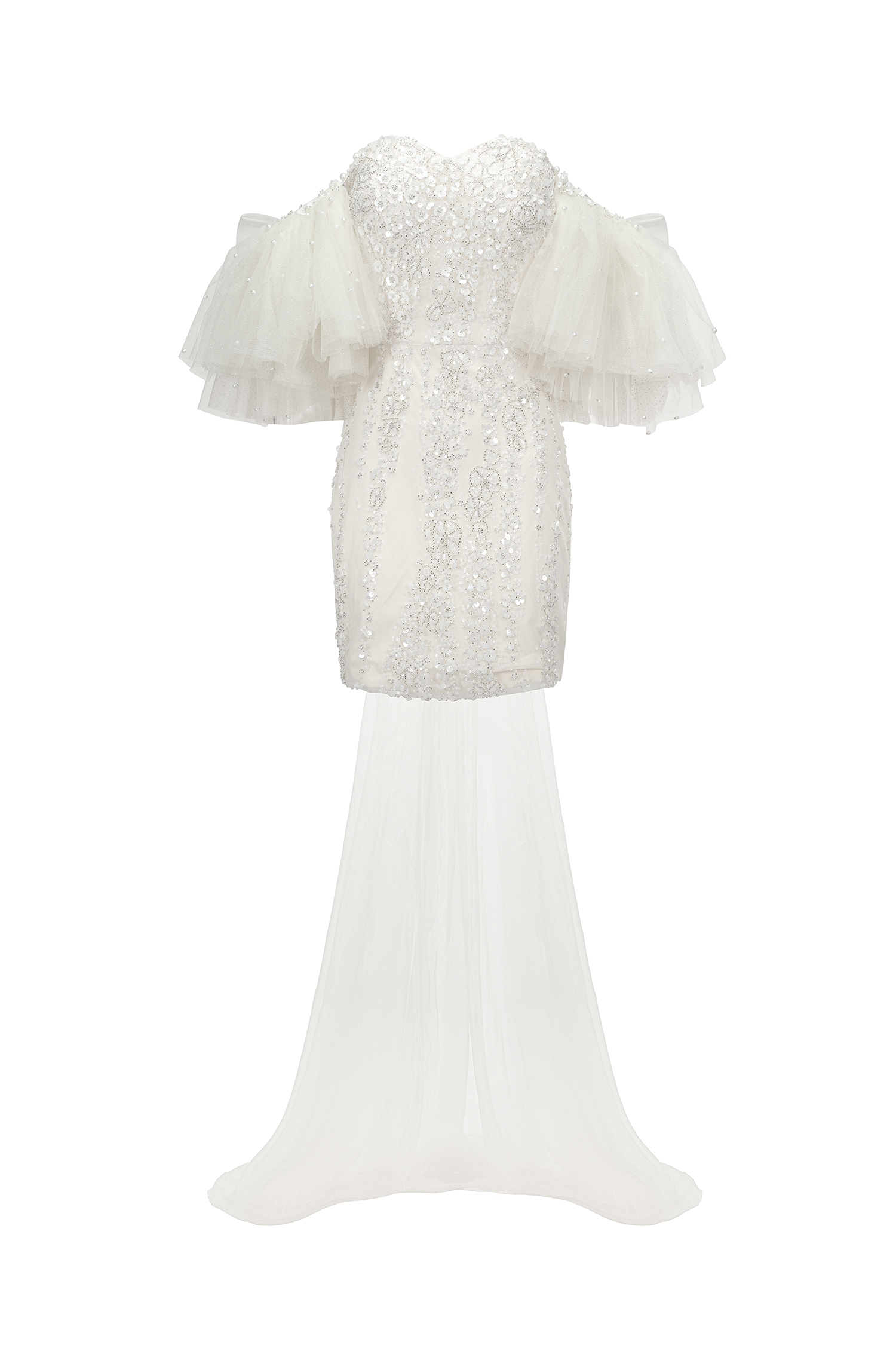 Kavaza Off Shoulder Mesh Mini Bandage Dress
