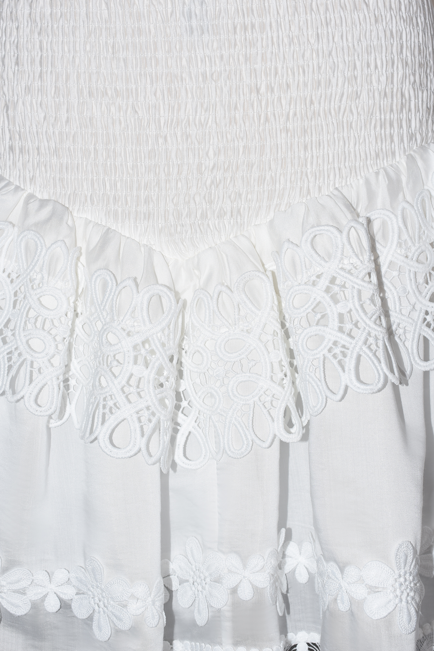 Eleanore Off The Shoulder Ruffled Edge Midi Dress