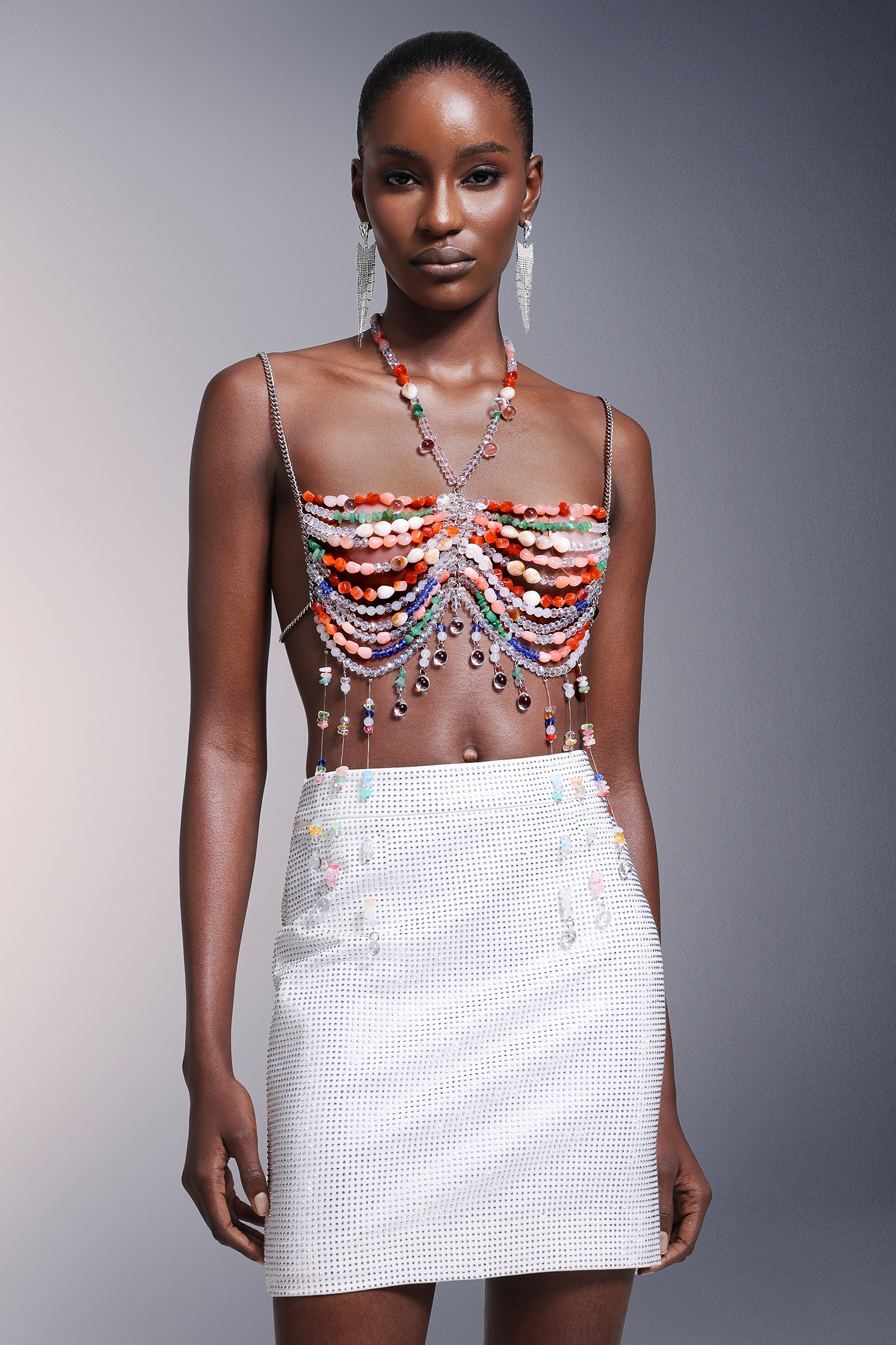 Emberson Sleeveless Halter Beadwork Chest Chain