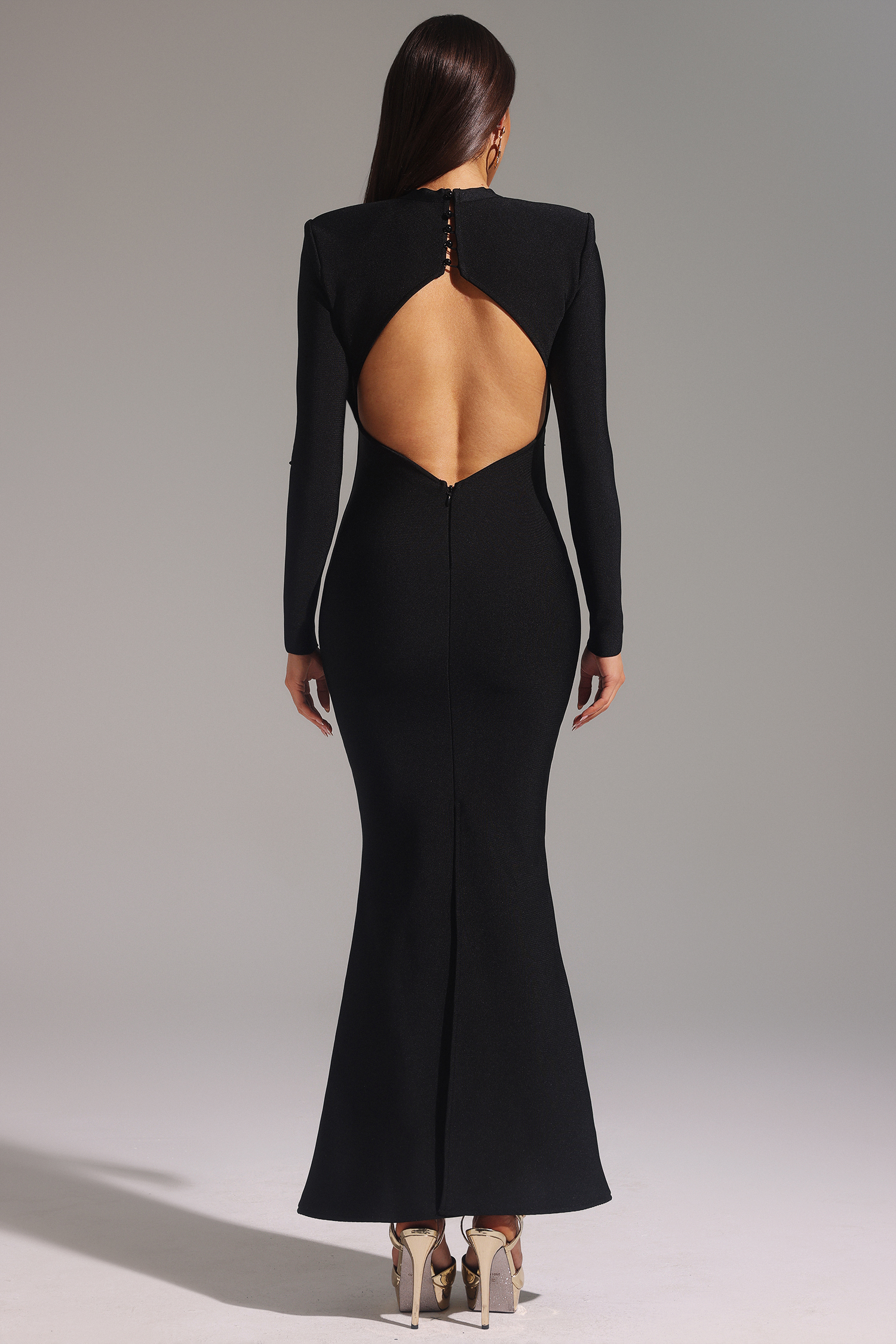 Filasy Long Sleeve Hollow Out Fishtail Bandage Maxi Dress