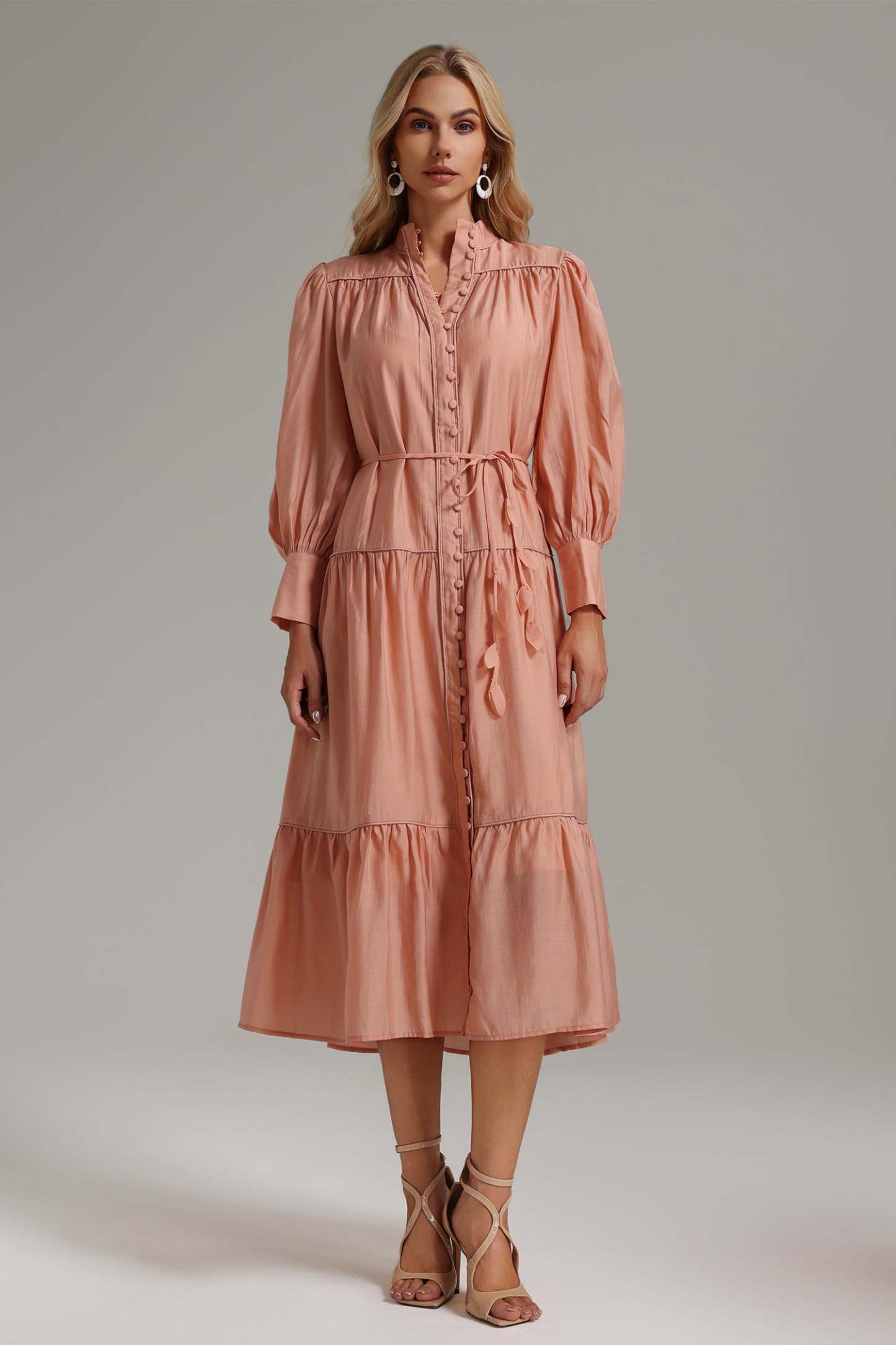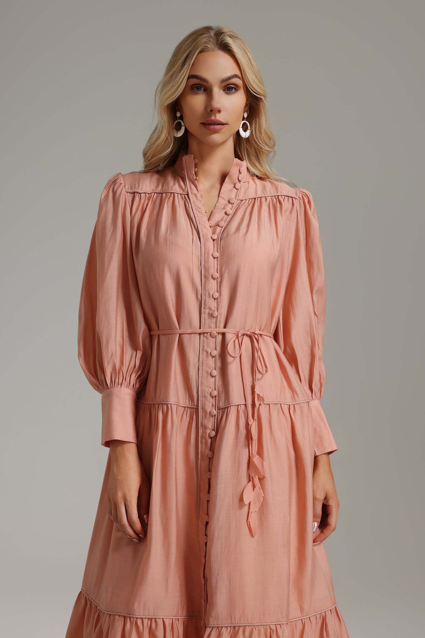 Janneth Button Placket Ruffle Dress