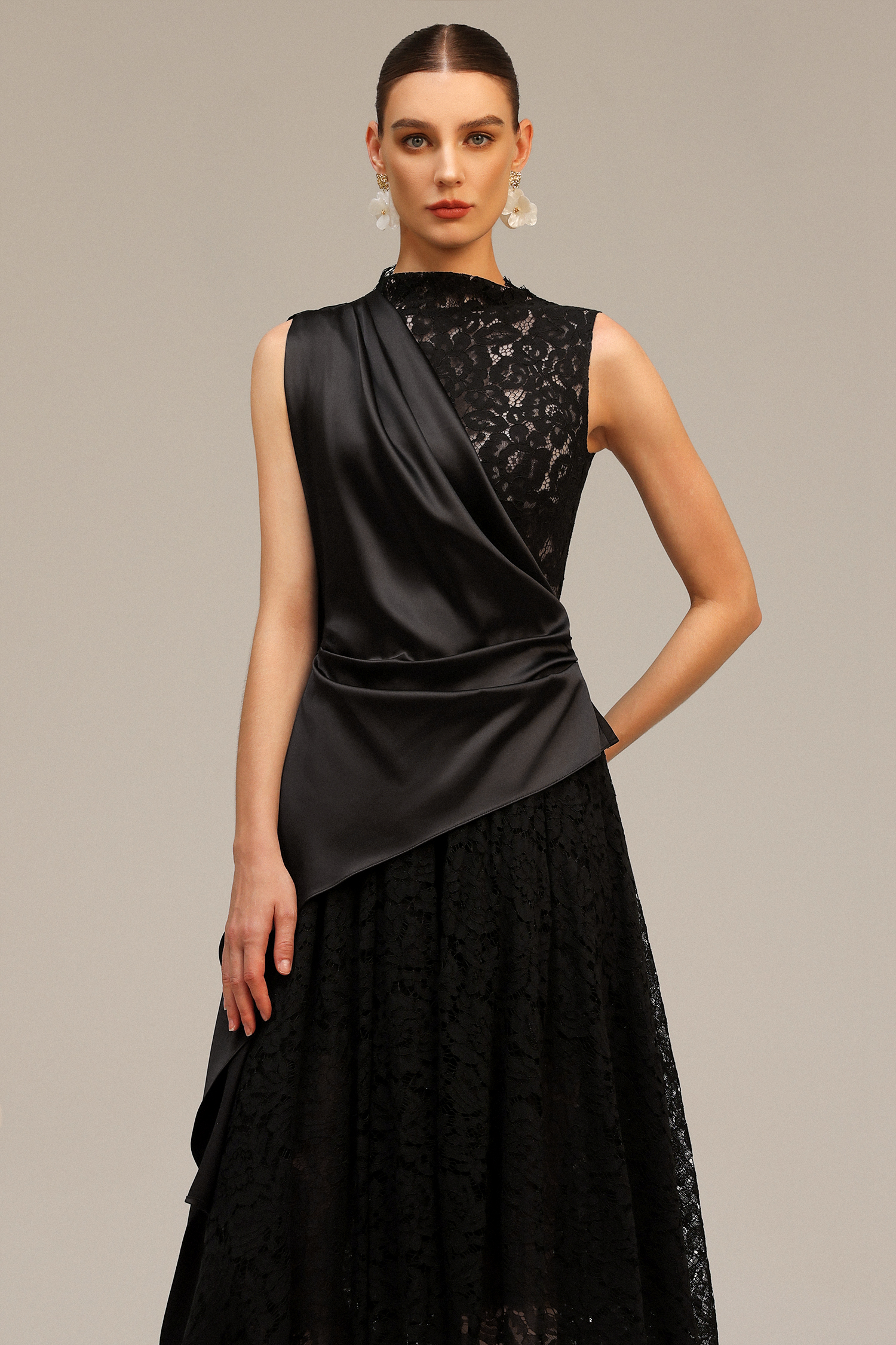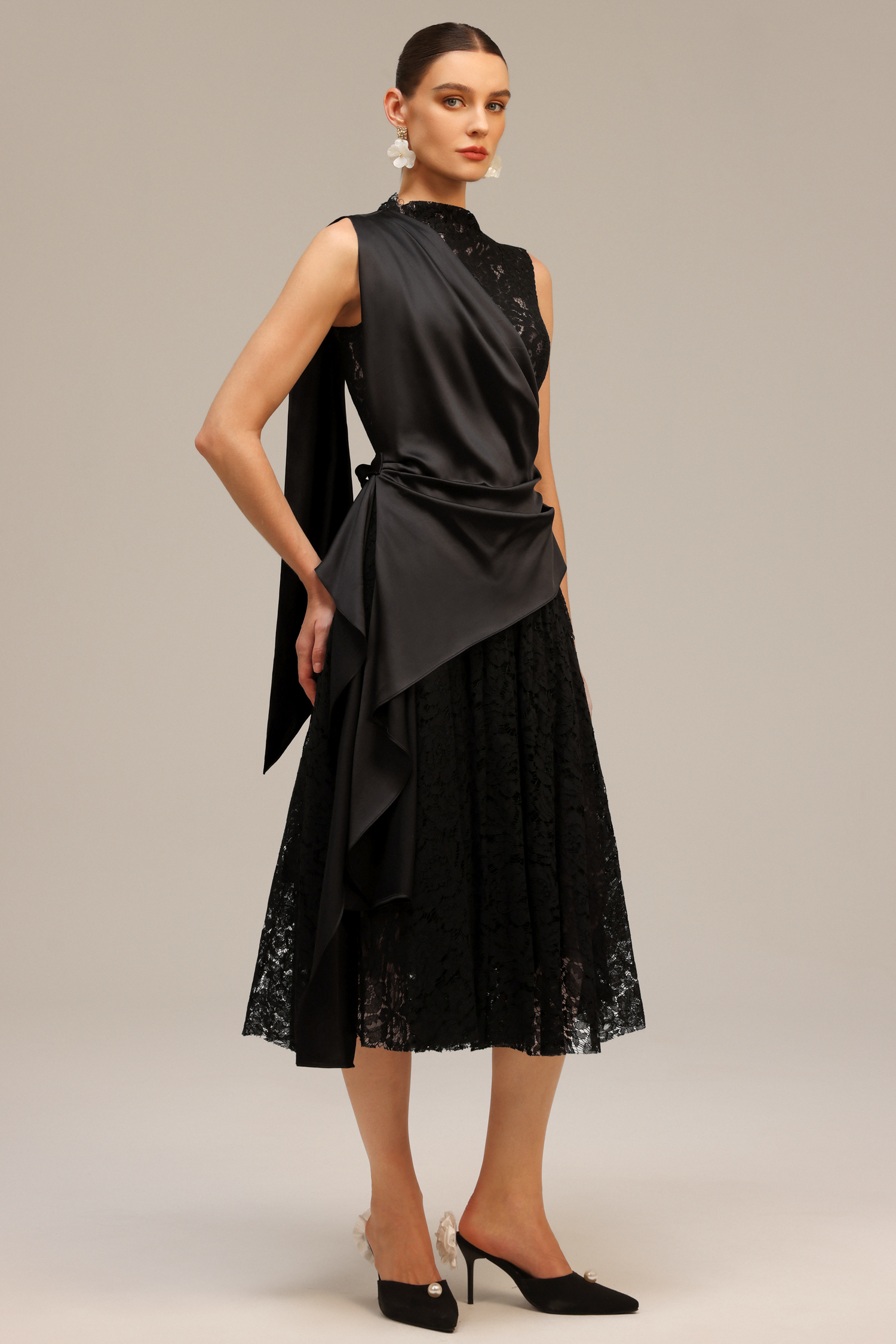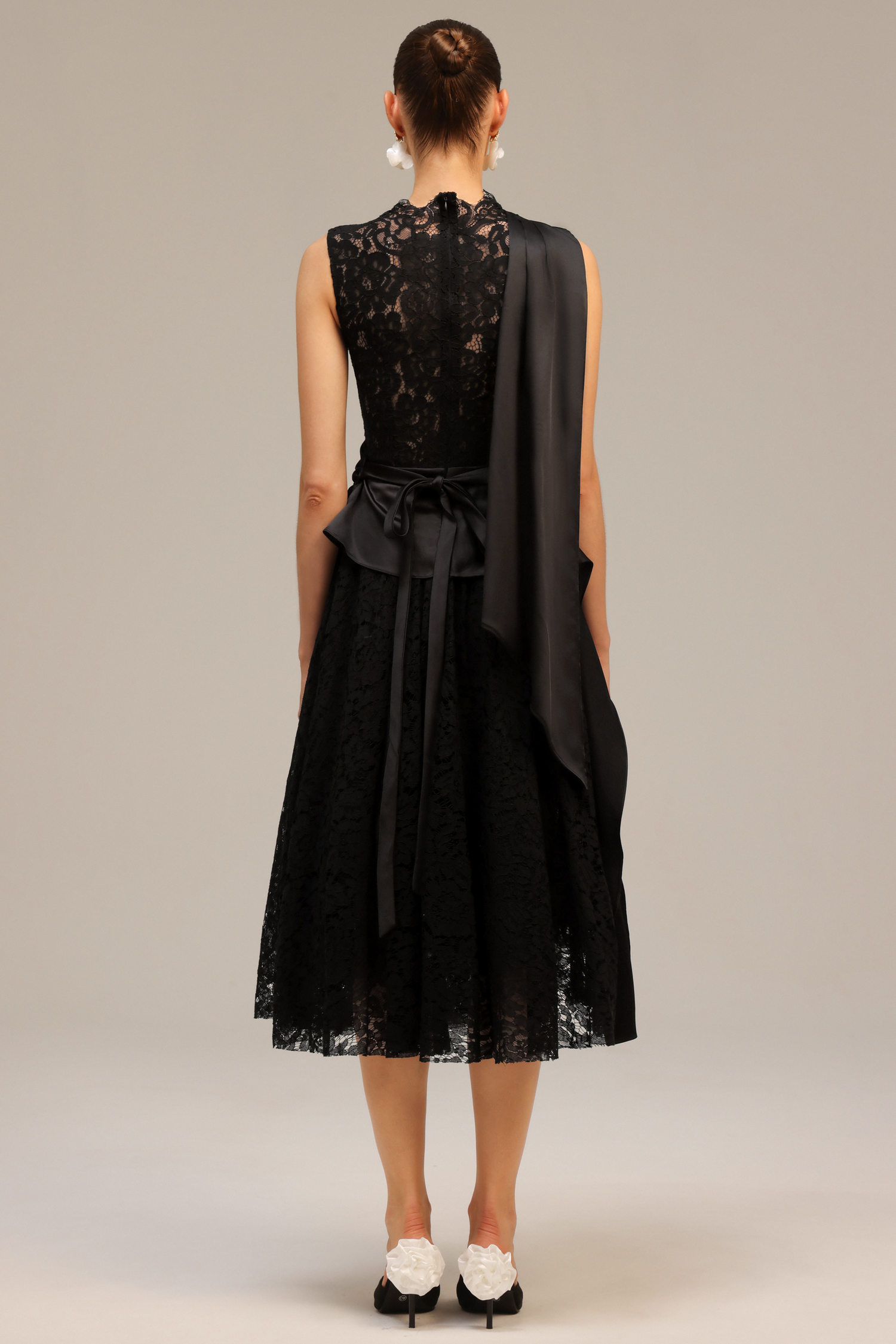 Moto Sleeveless Streamer Lace Midi Dress