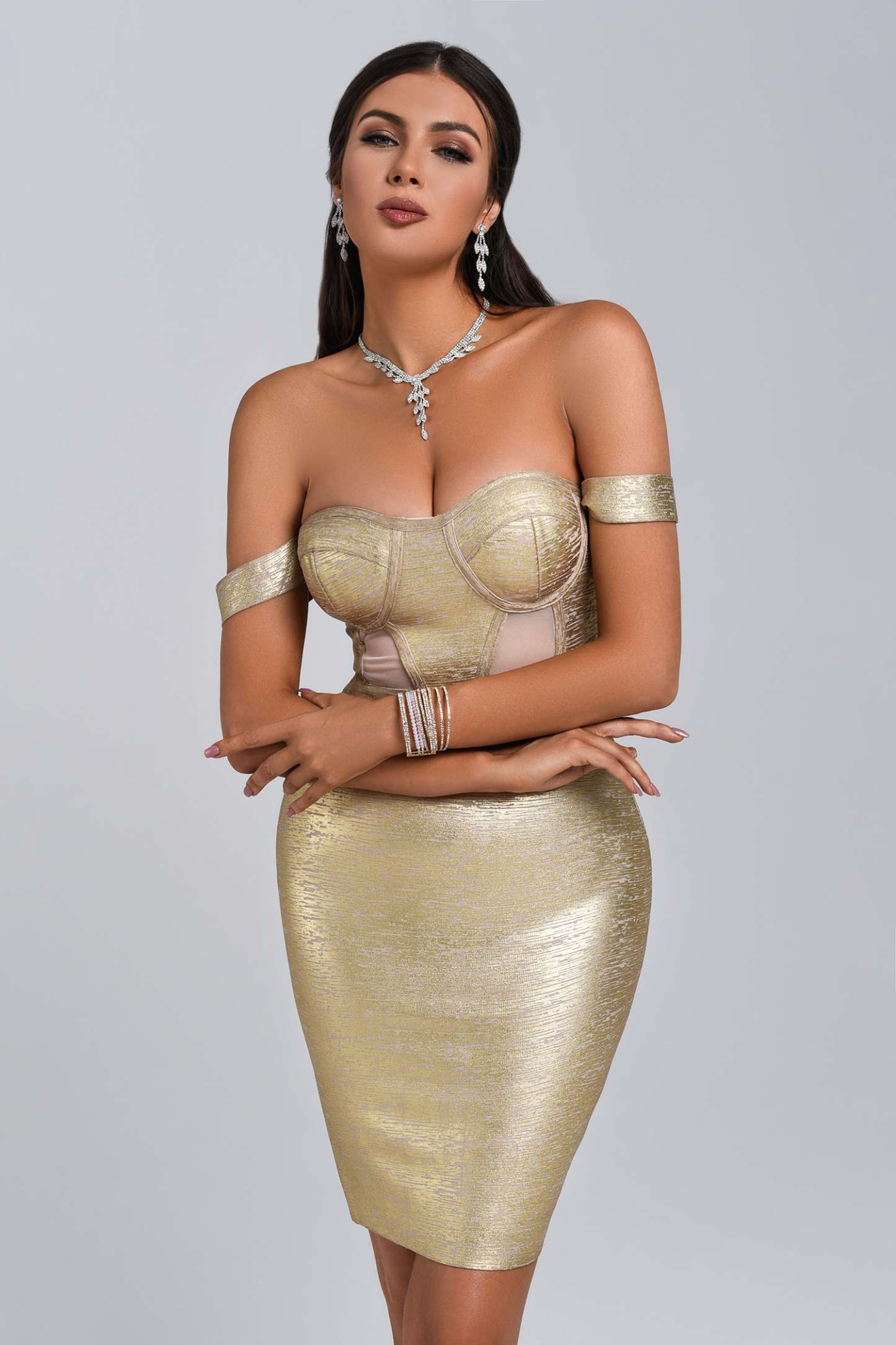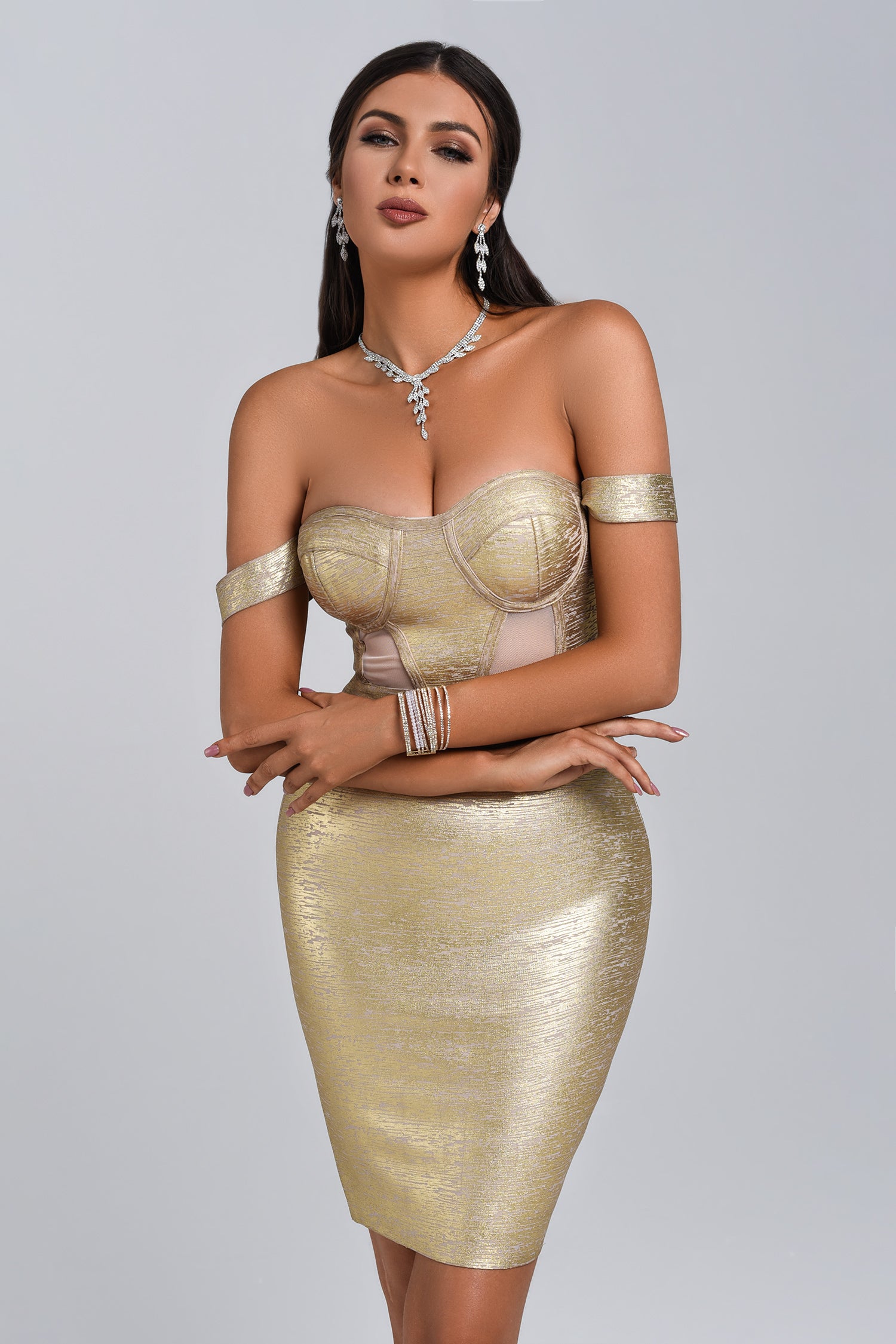 Sakari Off Shoulder Metallic Cocktail Dress - Gold