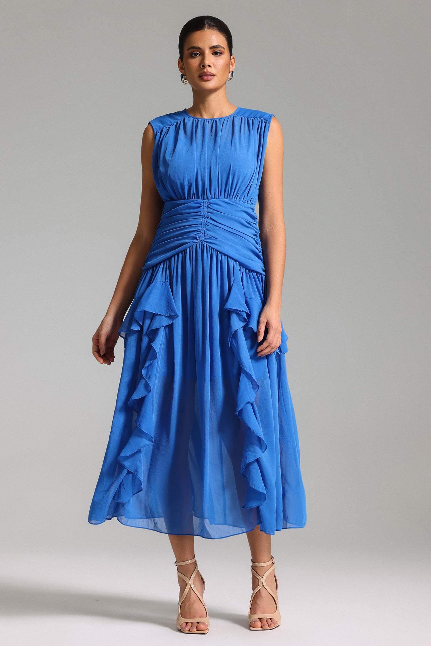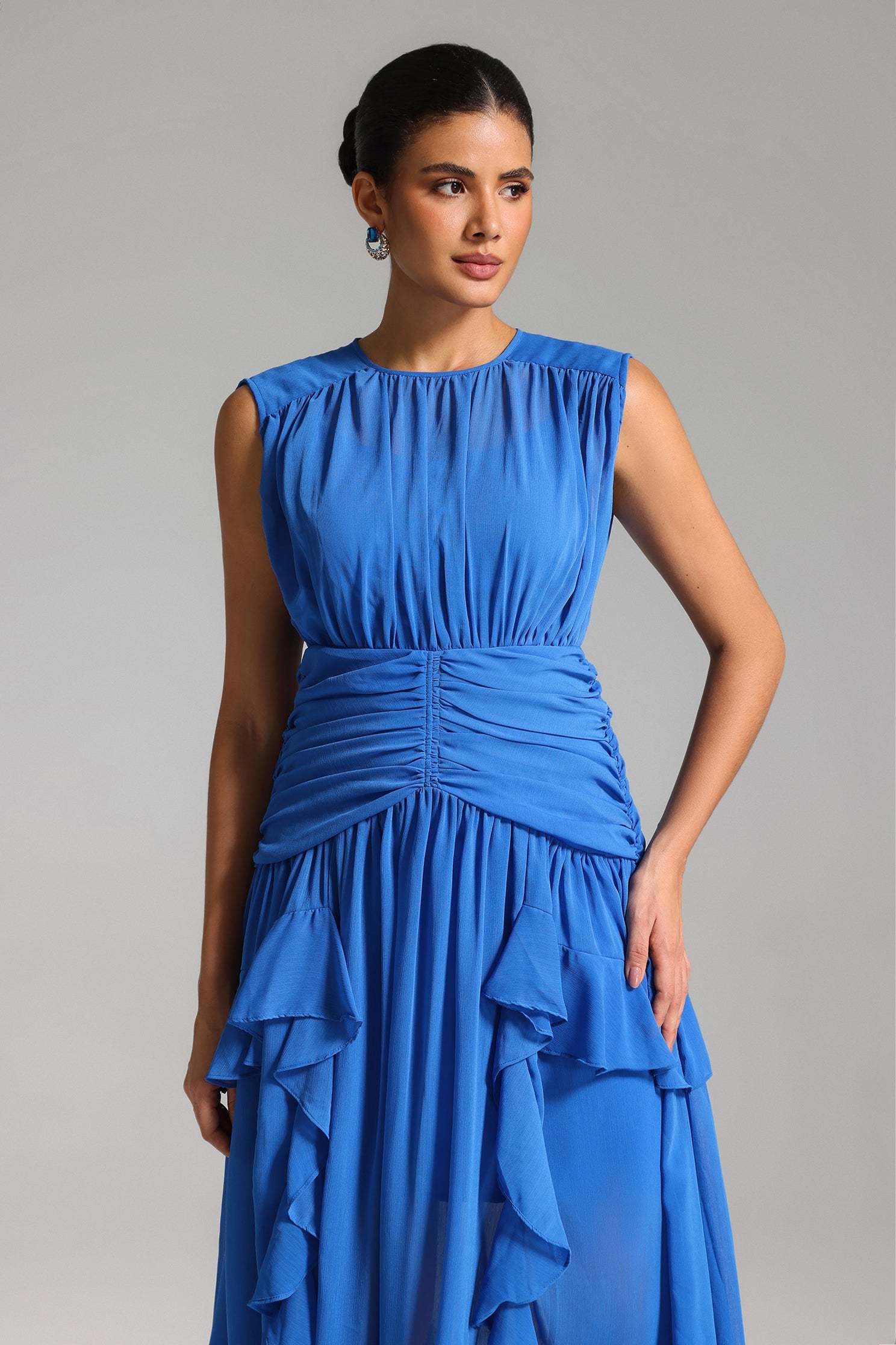 Vella Ruffled Mesh Maxi Dress