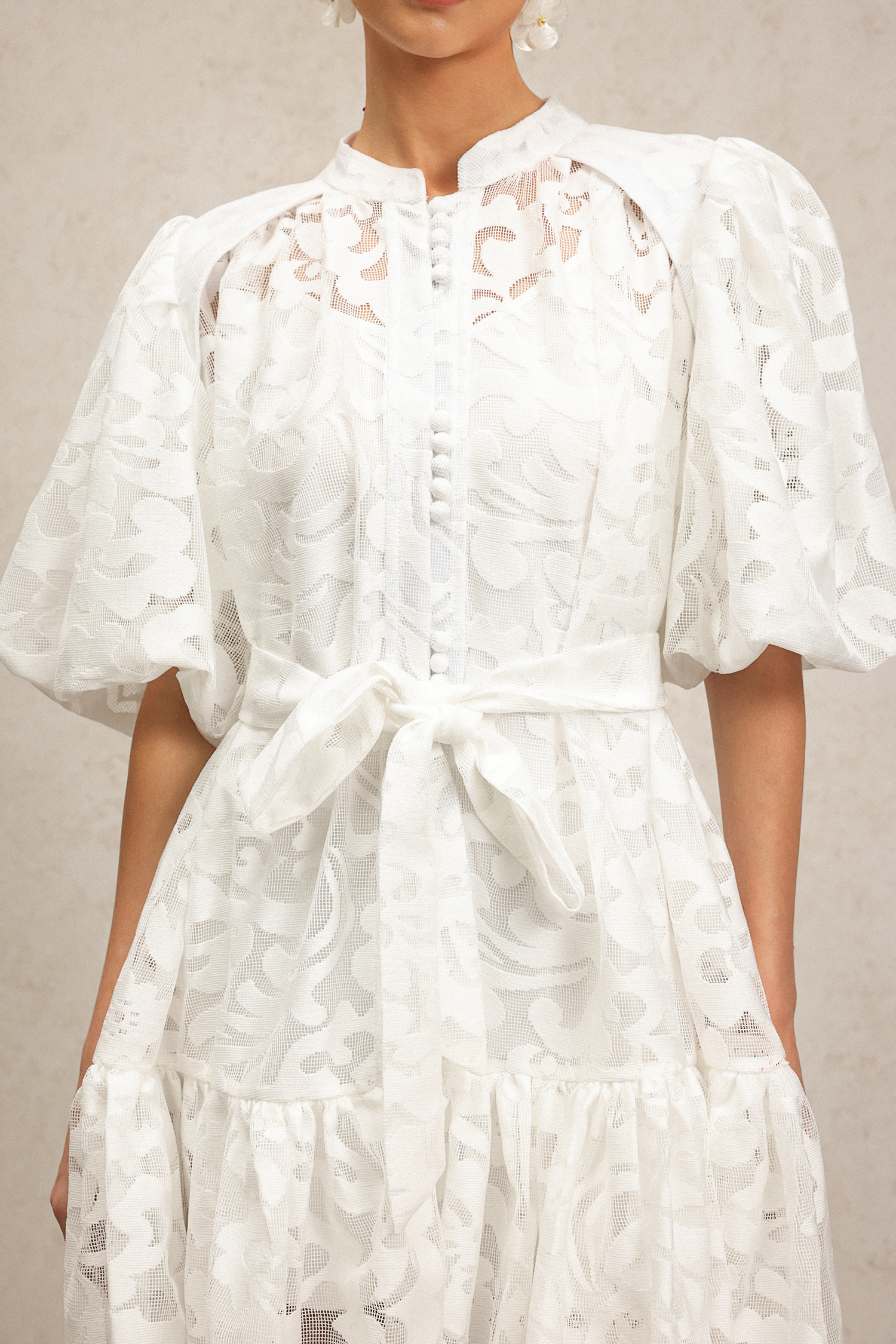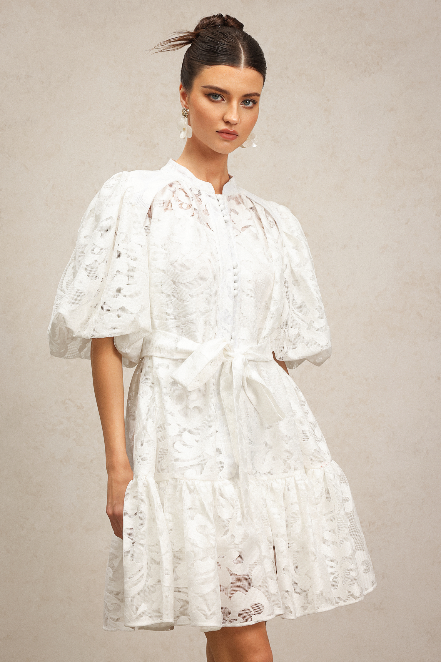 Wilisa Short Sleeves Jacquard Mini Dress