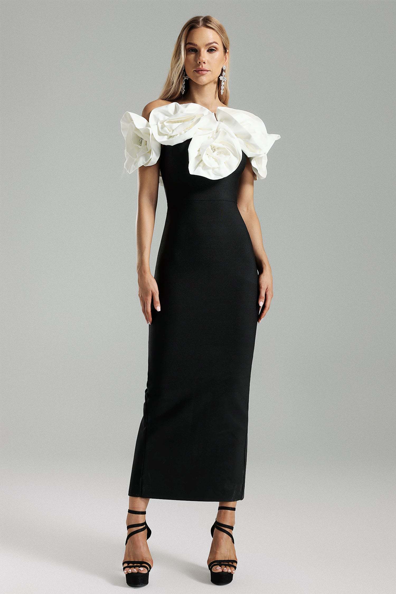 Yamaly Flower One Shoulder Maxi Dress - Black